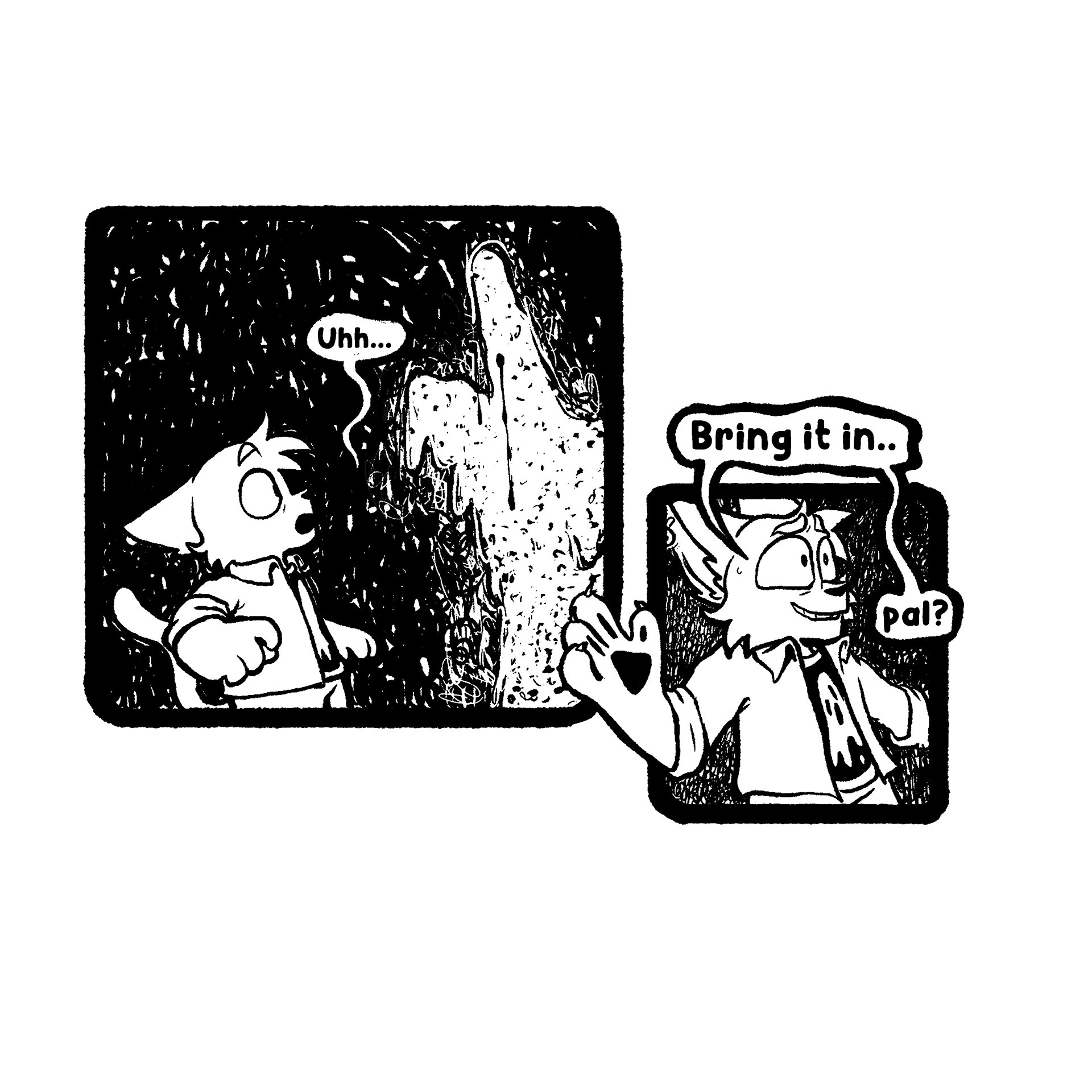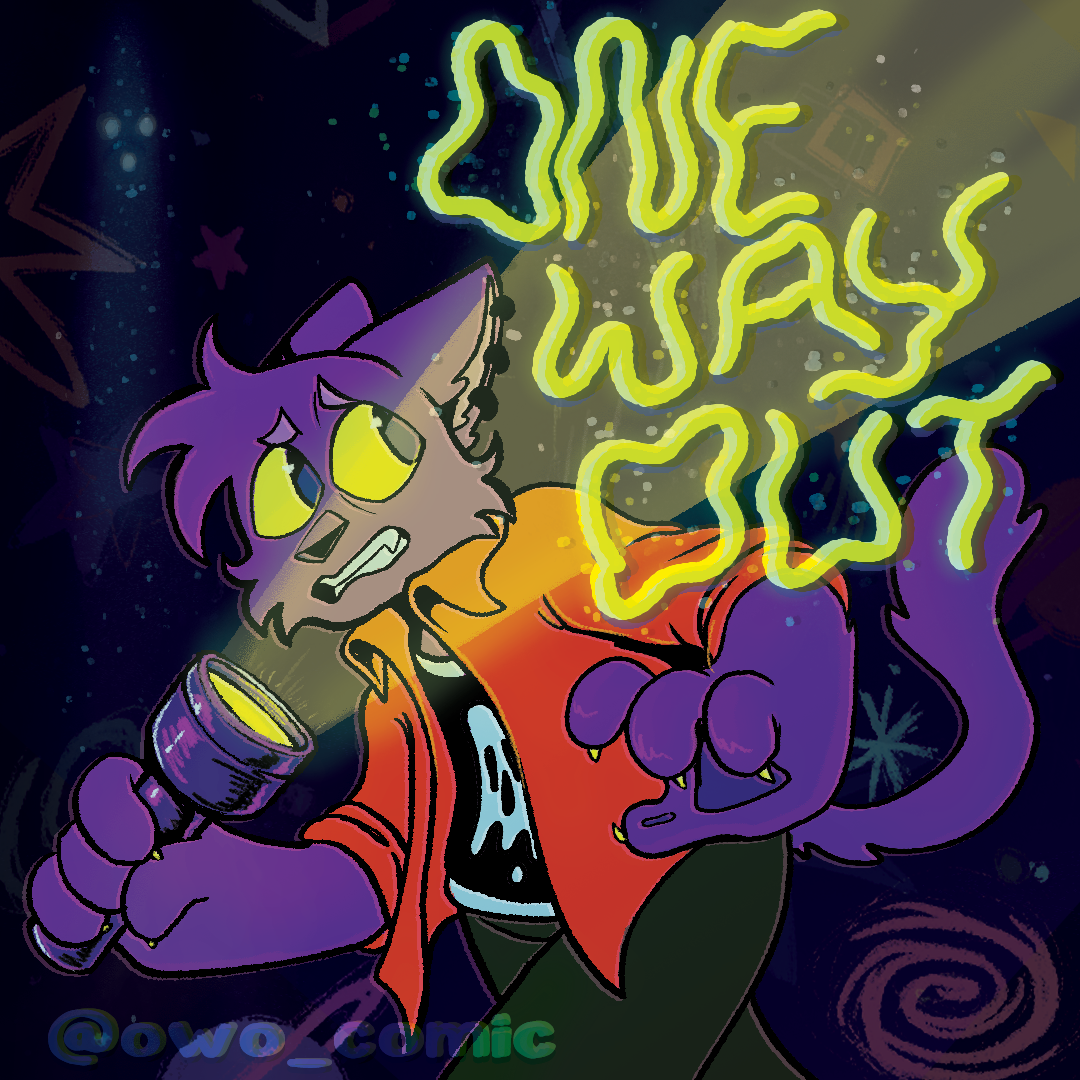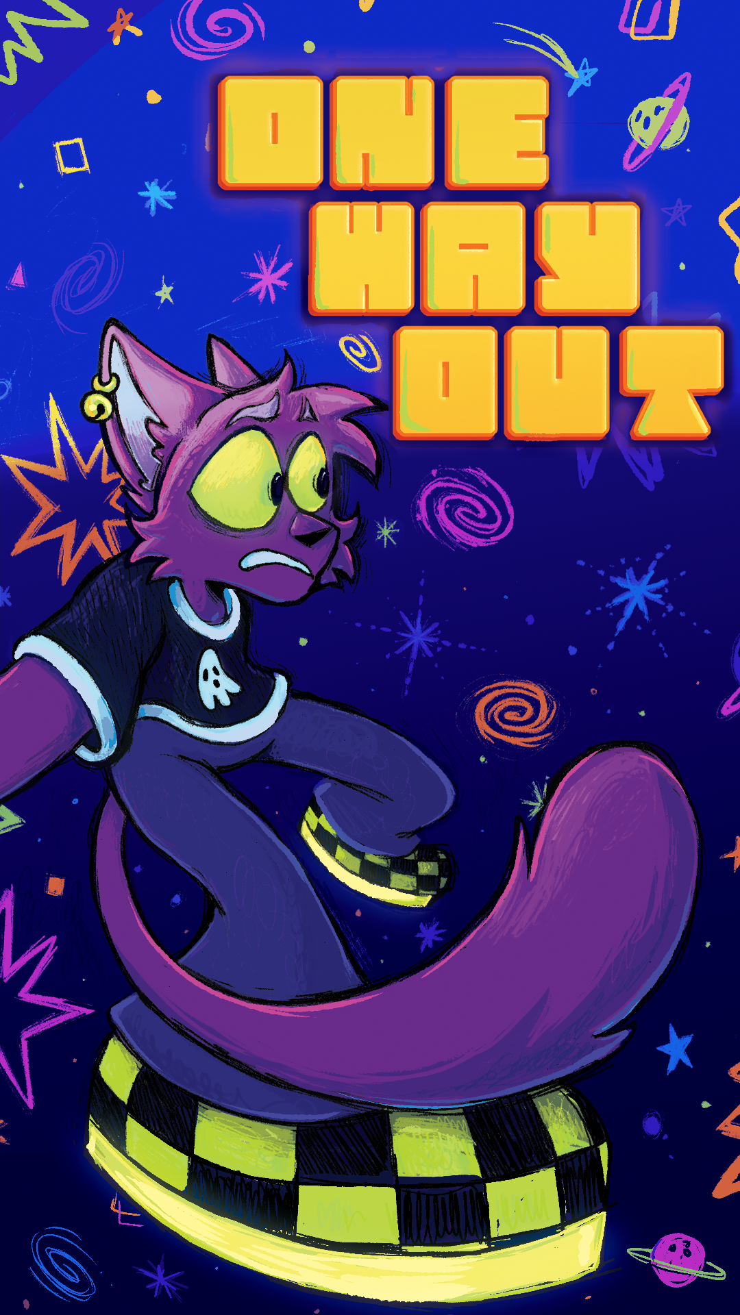 One Way Out is about Arcade, a cat in their late 20's struggling to make rent while working as a freelance ghost hunter. One Way Out began releasing online via Webtoon in fall of 2024.