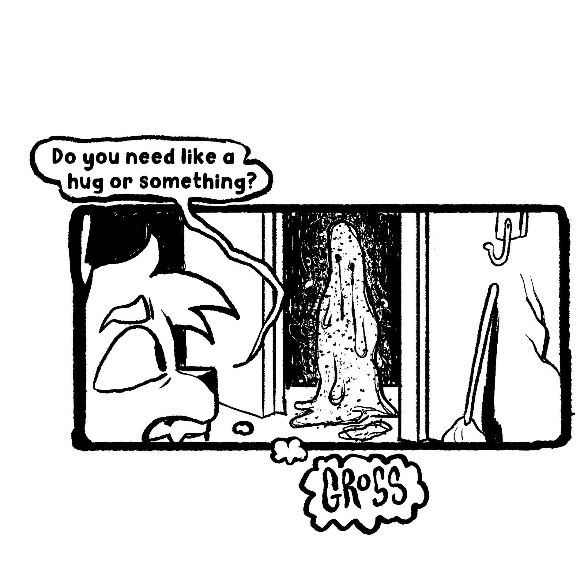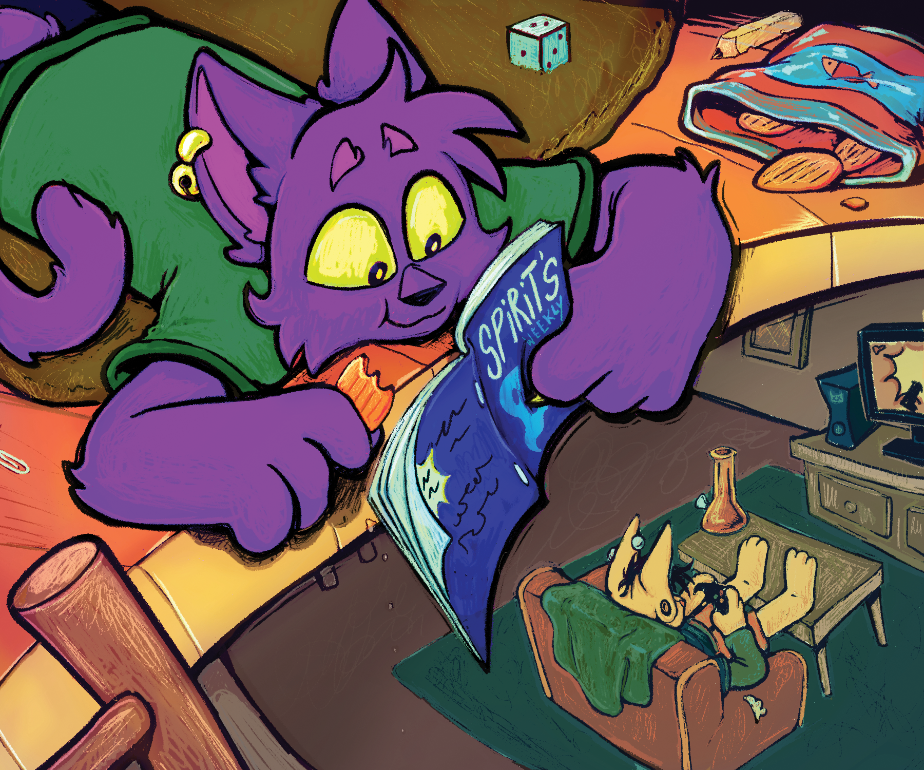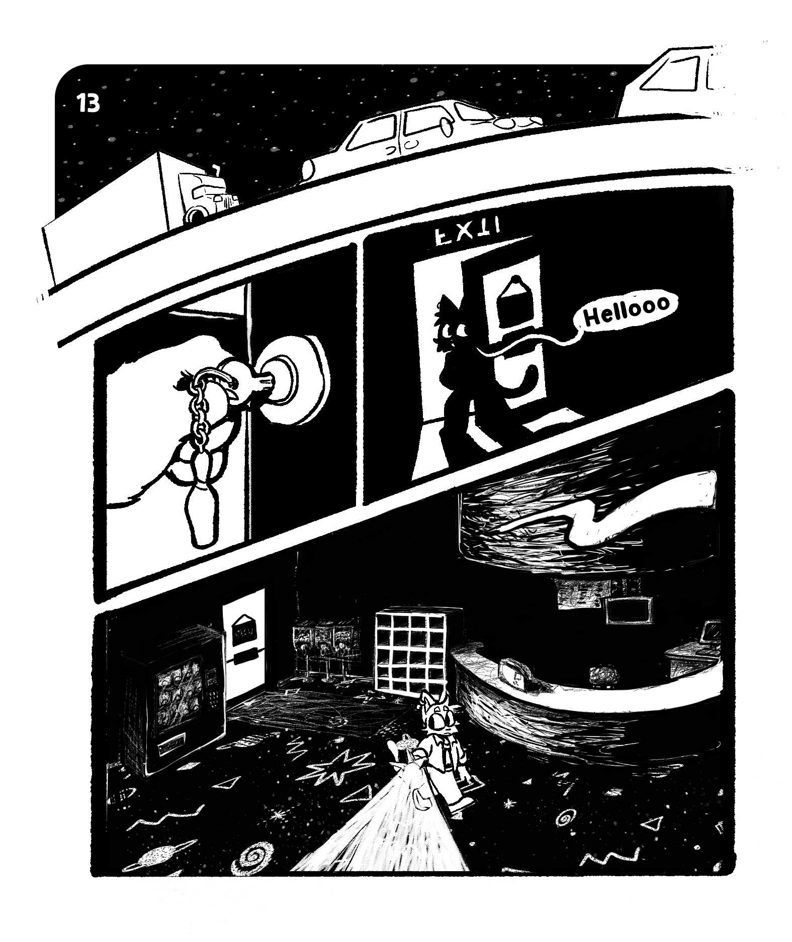 One Way Out is about Arcade, a cat in their late 20's struggling to make rent while working as a freelance ghost hunter. One Way Out began releasing online via Webtoon in fall of 2024.